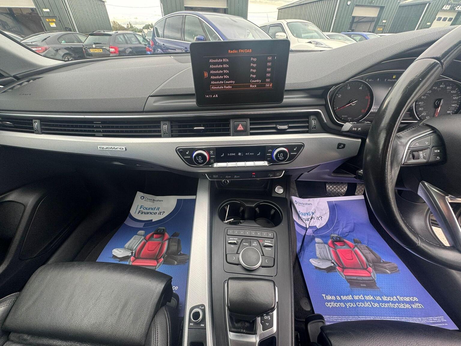 18in Alloy Wheels - 5-Twin-Spoke Dynamic Design, 2 x USB Charging Ports and 1 x AUX-IN, 4-Way Electric Lumbar Support, 6-Airbag System, Anti Theft Locking Wheel Bolts, Anti-Theft Alarm, Audi Connect - 3 Month Trial, Audi Connect Safety and Service - e-call, Audi Drive Select with Additional Off-Road Mode, Audi Smartphone Interface, Audi Sound System, Auto-Dimming Rear-View Mirror, Bluetooth Interface, Body Coloured Door Mirrors, CD Drive, Chrome-Plated Trims for Exhaust System, Collapsible Spare Wheel, Comfort Dynamic Suspension with 34mm Increased Ride Height Over A4 Avant, Cruise Control System with Freewheeling Capability and Speed Limiter, DAB Digital Radio, Deluxe 3-Zone Electronic Climate Control, Door Mirrors - Electrically Adjustable and Heated with Built-in LED Indicators, Door Sill Trims with Aluminium Inlay with allroad Logo, Driver Information System - 7in Colour Display, ESC - Electronic Stabilisation Control inc ABS - ASR and EDL, Electric Load Area Cover, Electric Windows - Front and Rear, Electromechanical Power Steering, Email - Calendar and Text Messages can be Displayed on your Vehicles MMI, Extended Aluminium Side Sills, Extended Side Sills in Selenite Silver, First Aid Kit and Warning Triangle, Front Centre Armrest, Front and Rear Bumpers and Extended Wheel Arches in Contrasting Finish, Heated Front Seats, High Gloss Package, High Multifunction 3-Spoke Leather Trimmed Steering Wheel with Chrome Clip, ISOFIX Child Seat Mounting and Top Tether, Inlays - Aluminium Ellipse - Silver, Keyless Go, LED Headlights with LED Rear Lights and Dynamic Rear Indicators, LED Interior Light Package, Light and Rain Sensor, MMI Navigation - SD Card Based, Manual Height Adjustment for Front Seats, Multi Collision Brake Assist, Off-Road Detection System, Off-road Aluminium Package, Online Media Streaming - Audi MMI Connect App Required, Parking System Plus, Pop-Up Bonnet for Pedestrian Protection, Power Operated Tailgate, Pre-Sense City, Privacy Glass and Front Acoustic Glazing, Remote Central Locking, Seat Belt Monitoring, Split-Folding Rear Seat Bench in 3 Parts - 40-20-40 with Rear Centre Armrest, Stainless Steel Loading Sill Protector, Storage Package, Tool Kit and Car Jack, Towbar Preparation, Underbody Protection, Voice Control, Windscreen with Acoustic Glazing, allroad Radiator Grille with Vertical Chrome Slats